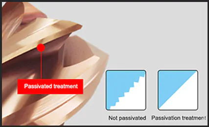APÓS O PASSIVATION TREATMENT A ARESTA É VERIFICADA EM UM LENTE QUE AUMENTA 200 VEZES PARA VERIFICAR SE NÃO HOUVE TRINCAS , REBARBAS, DEFEITOS DURANTE O PROCESSO. SE A ARESTA DE CORTE NÃO SOFRER O PASSIVATION TREATMENT A ARESTA PODE APRESENTAR SERRILAMENTO CONFORME FIGURA AO LADO.