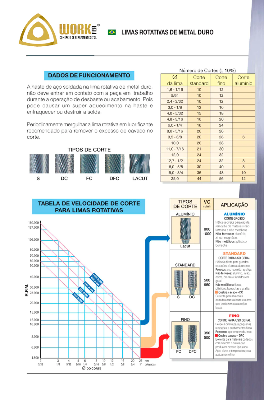 A lima rotativa é um produto desenvolvido para se obter alta performance em operações de rebarbação e desbaste, com excelente acabamento e alto poder de remoção. As limas rotativas são caracterizadas pelo tipo da lâmina de corte da ferramenta e formato, sendo estes, predominantes para determinar sua aplicação e obter o melhor desempenho.