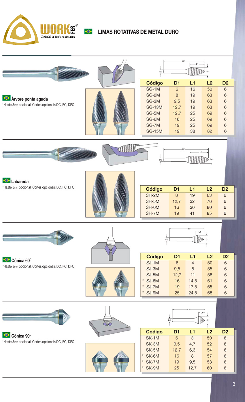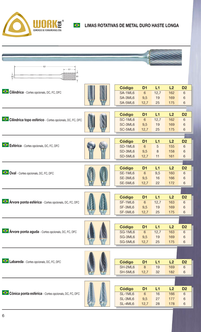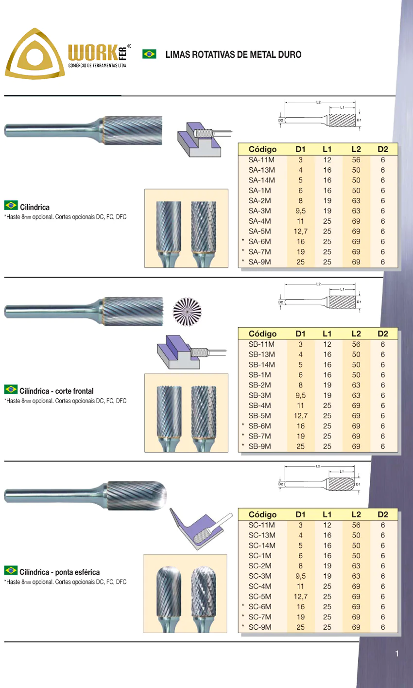 – Limas Rotativas de Material duro Cilíndricas